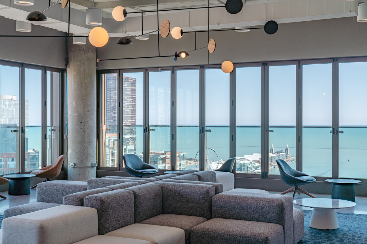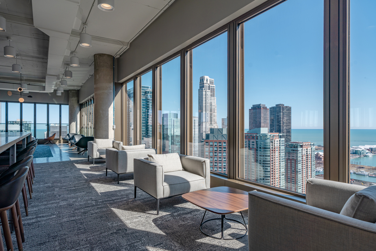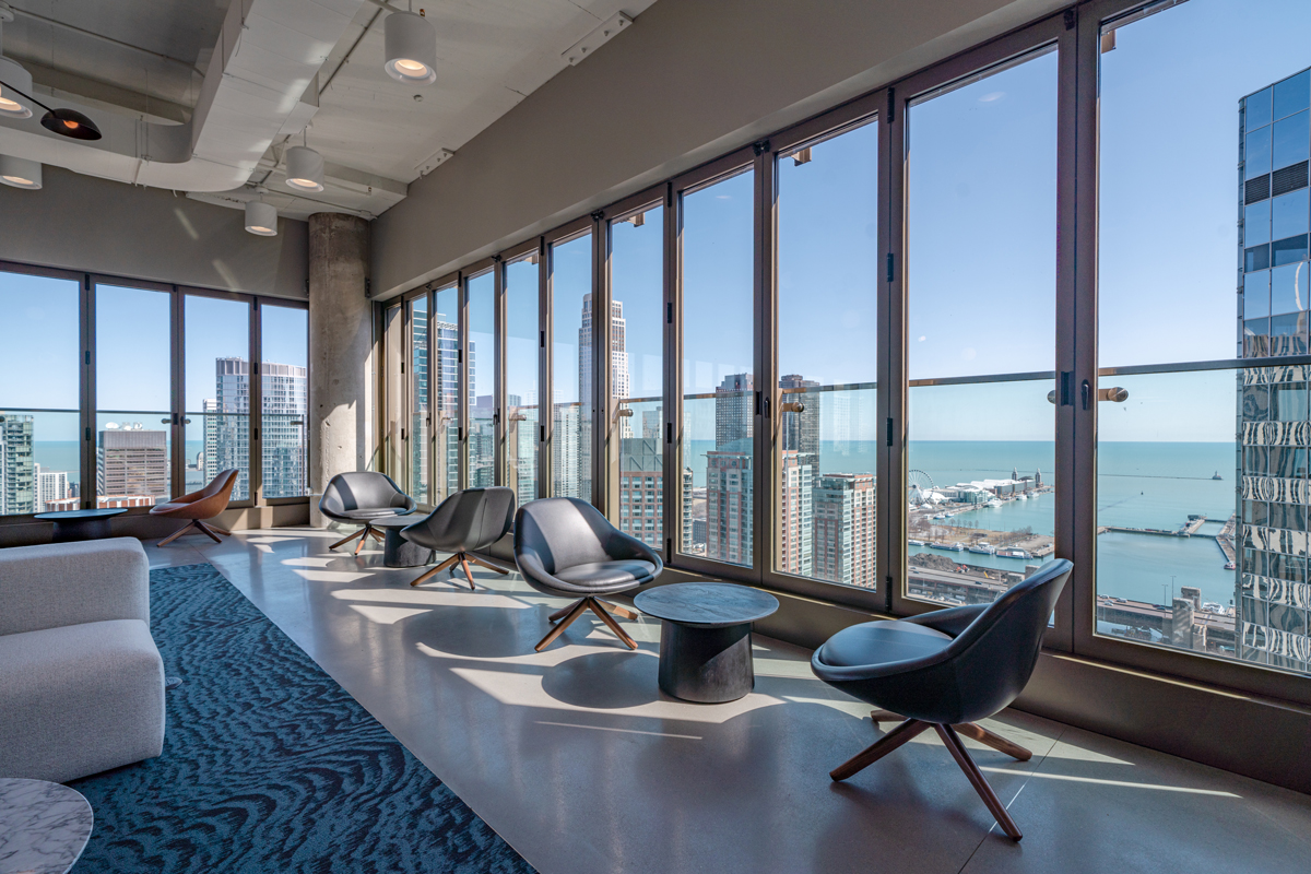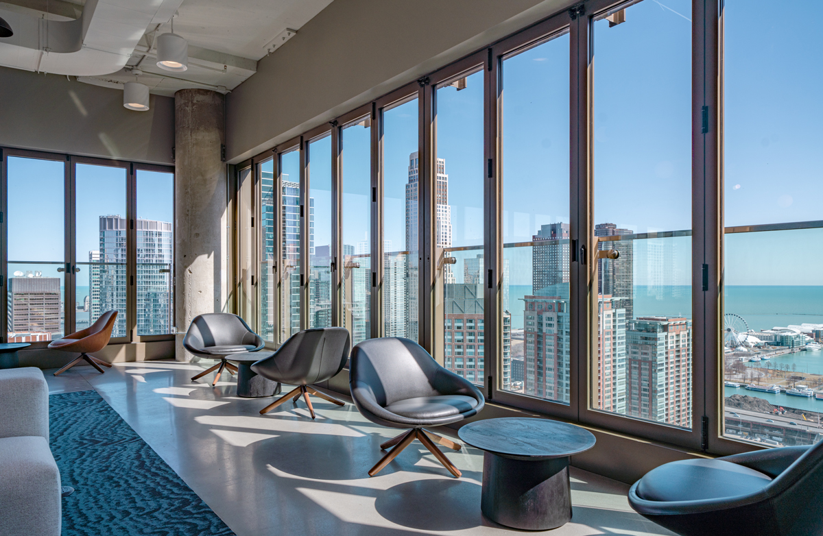 Floor to ceiling operable windows frame the amazing views of Lake Michigan and the Chicago River and allow you to enjoy the fresh air.