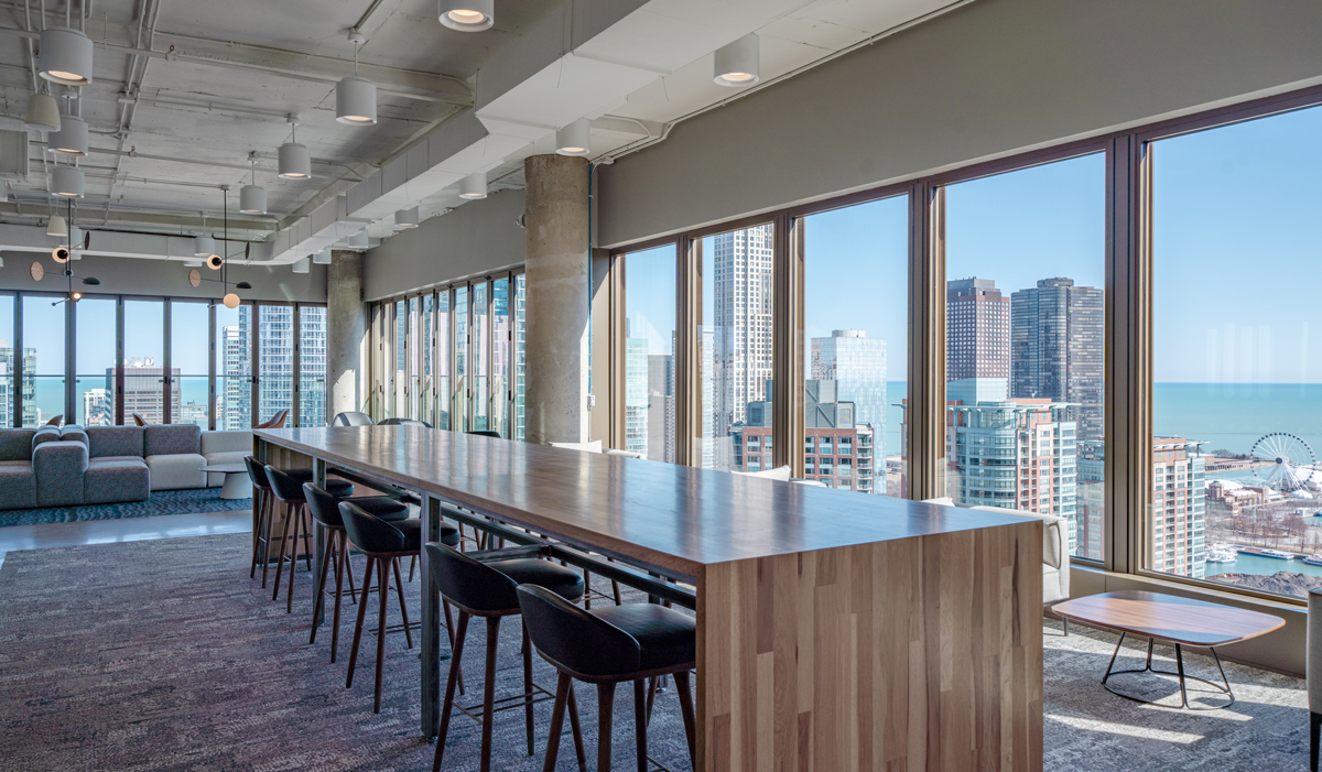 Located on the 30th floor of 303 East Wacker Drive, you will find the mid-century modern design of The Lighthouse event space.